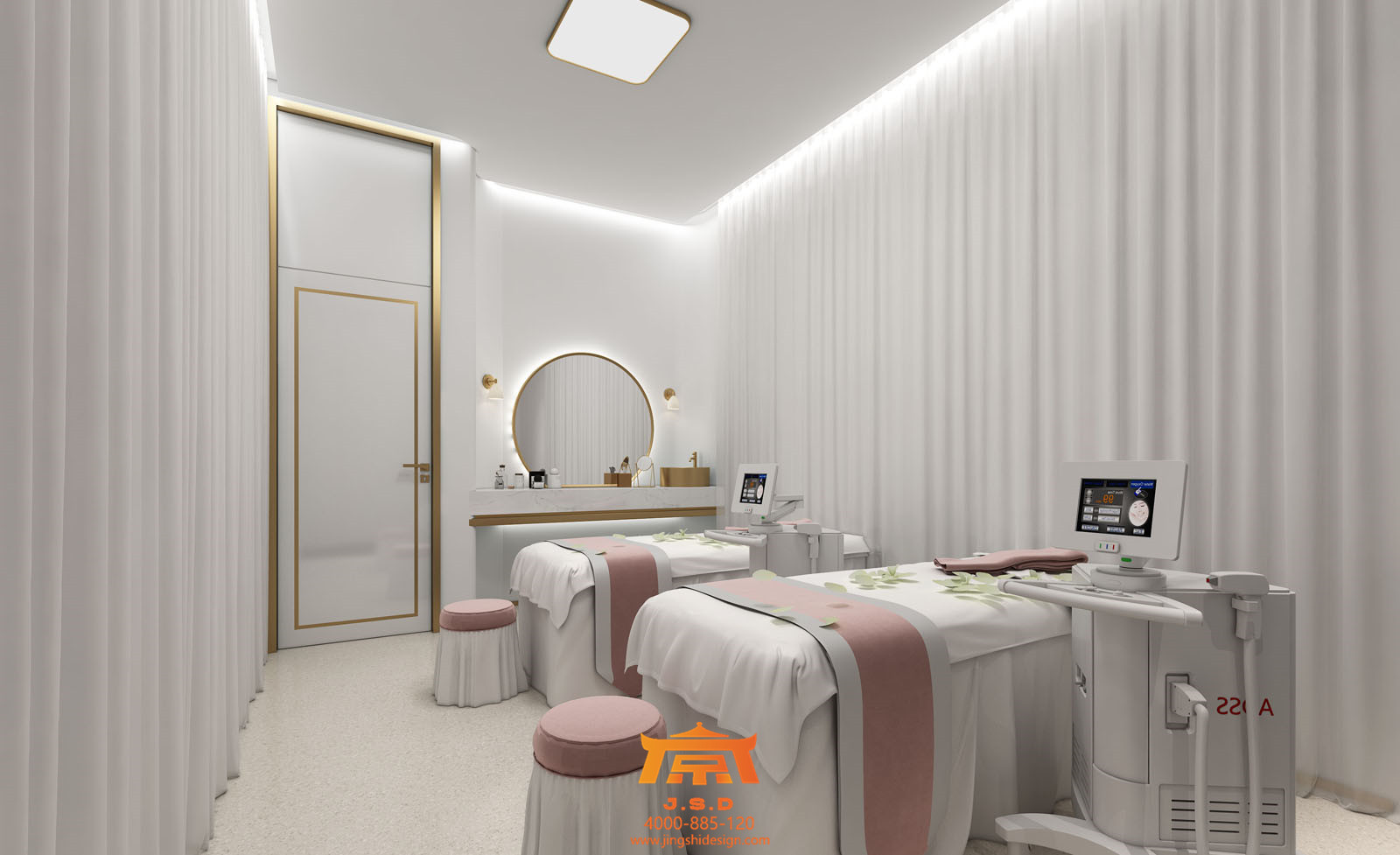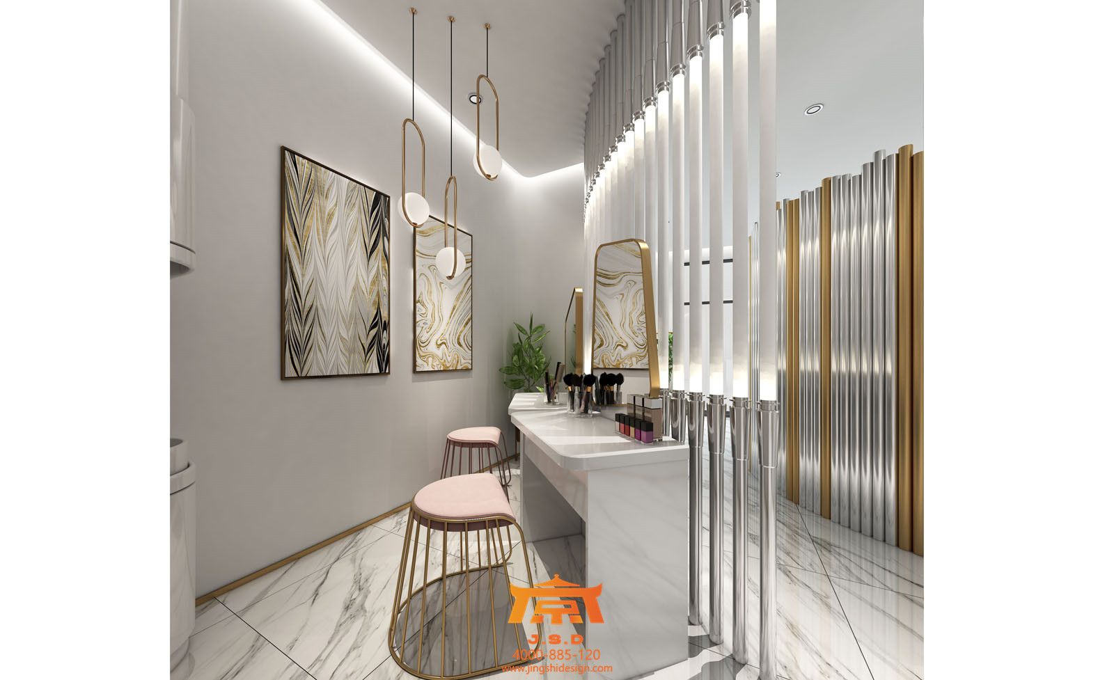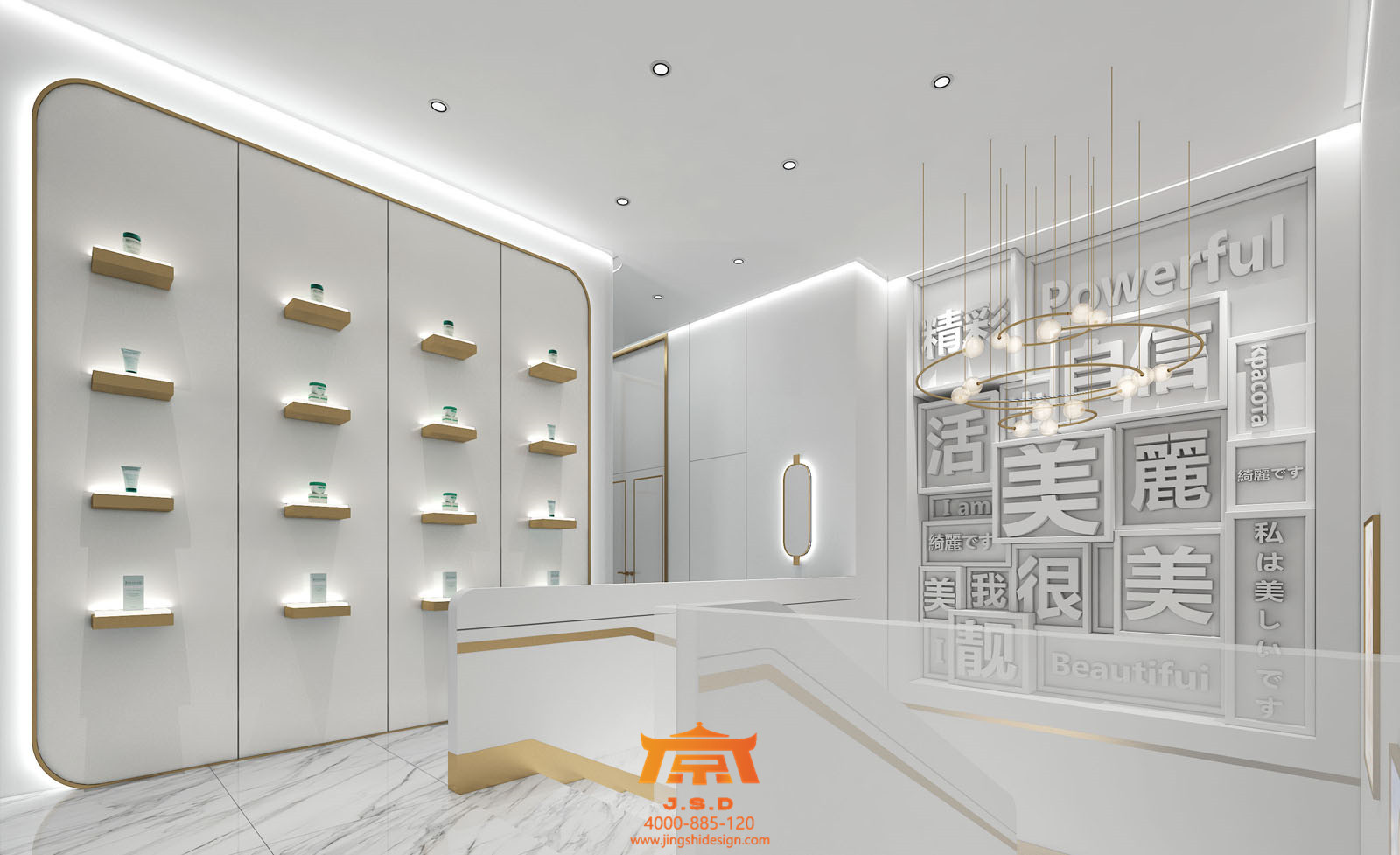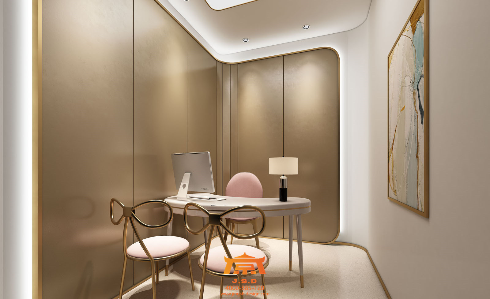 常年生活在北京的孩子對(duì)于成都這座城市還是抱有幻想的,提起霧都總有一股神秘力量在吸引著他們,成都人才輩出,藝術(shù)氛圍也不例外。第一家店整體風(fēng)格要求香檳金搭配醫(yī)療白,所謂的“網(wǎng)紅”風(fēng)格的標(biāo)配了,從視覺上此類風(fēng)格要有第一感受,整個(gè)空間簡約時(shí)尚,符合現(xiàn)階段年輕人的審美,但每一家網(wǎng)紅風(fēng)格都有自己的唯一性,進(jìn)入大廳陶瓷一般的接待臺(tái),金銀不銹鋼鋼管配合發(fā)光字,簡約石膏板吊頂,配合天花若隱若現(xiàn)云朵網(wǎng)狀造型,網(wǎng)紅氣質(zhì)越發(fā)濃厚。