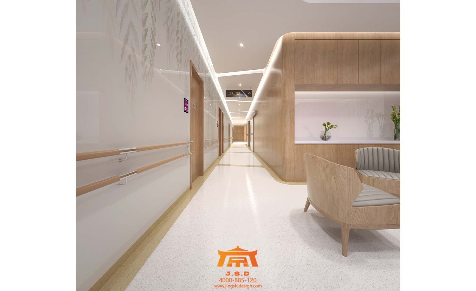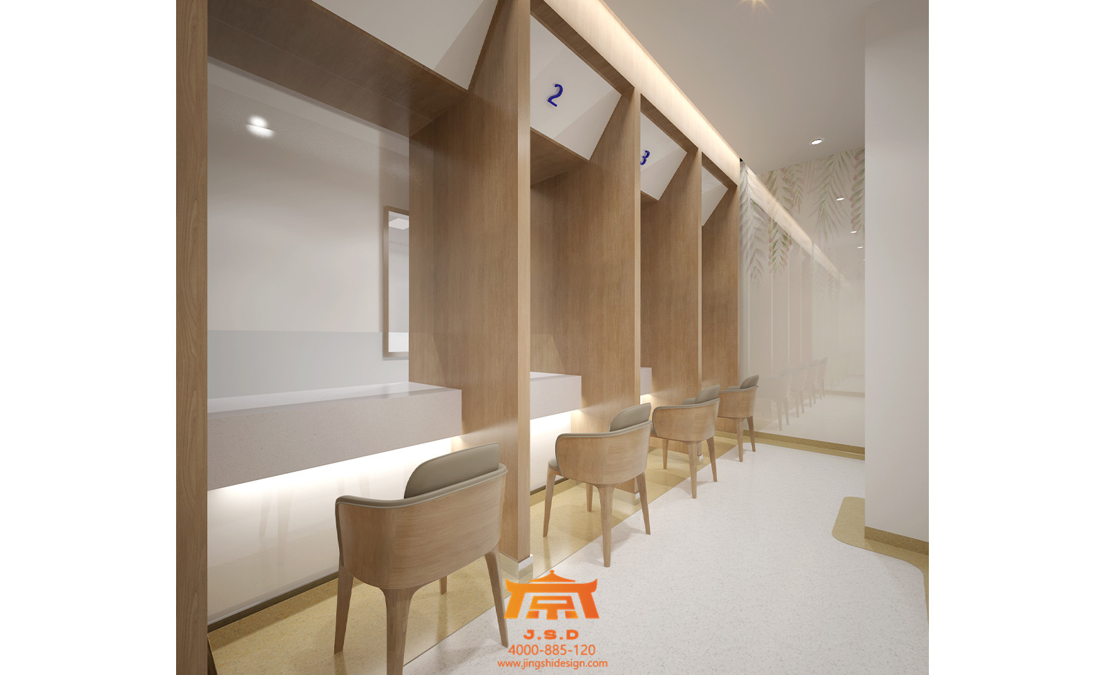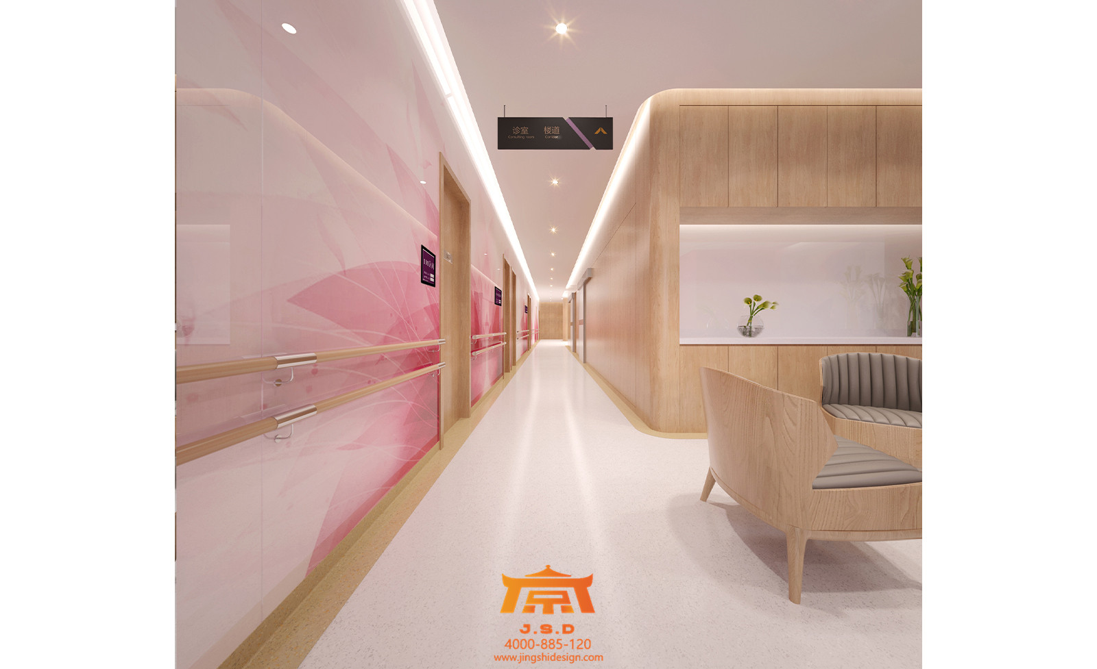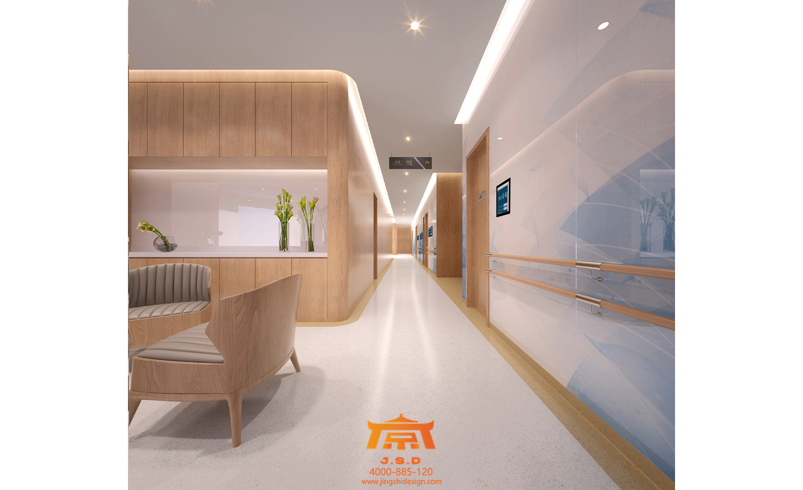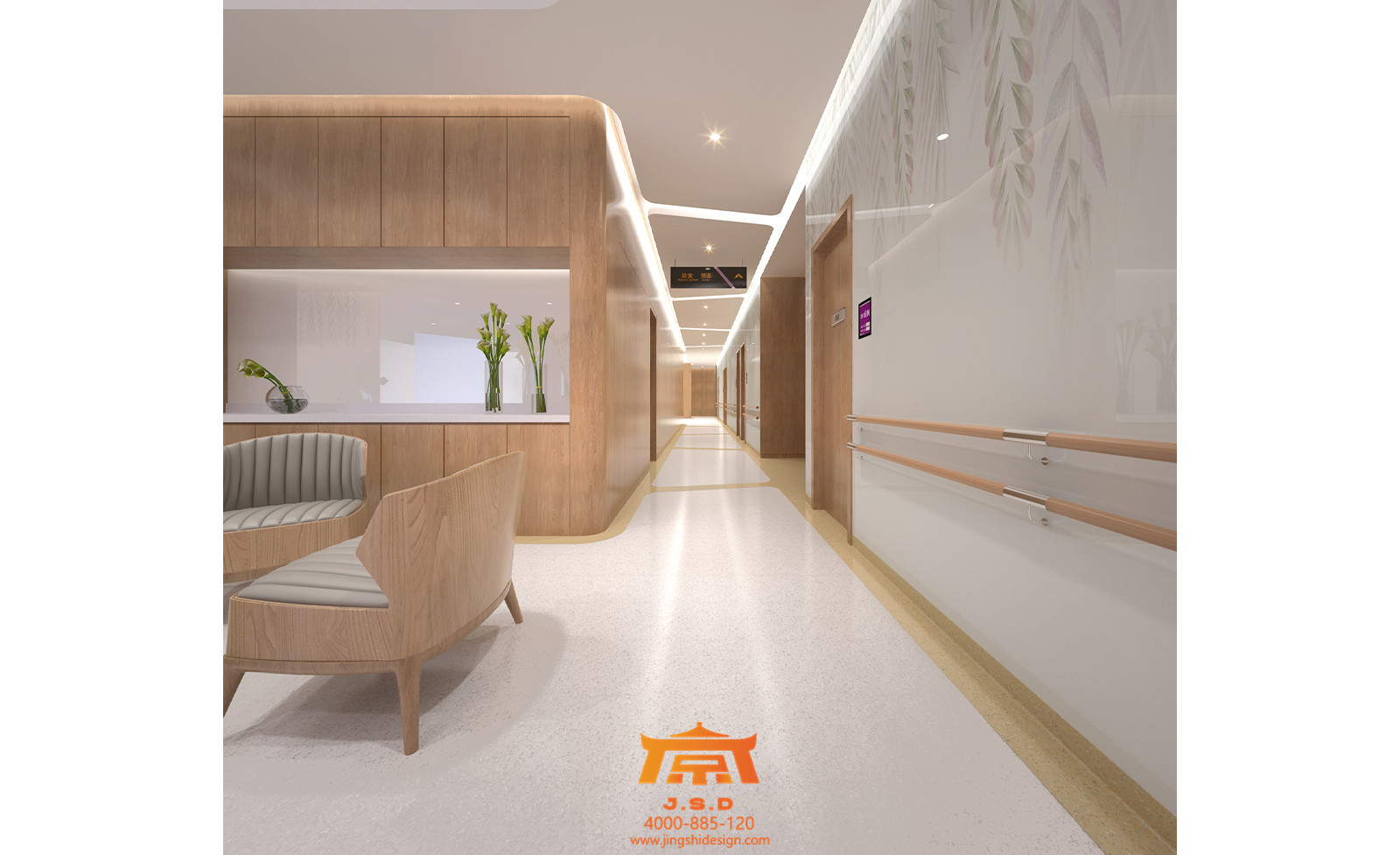 婦產(chǎn)醫(yī)院想展現(xiàn)有親和力的藝術(shù)化表現(xiàn),而設(shè)計(jì)其本身就有直指人心的內(nèi)涵訴求,治療與坐月子的安心康養(yǎng),承載人性對于生活和健康的真切向往,也是傳承下一代的決心。大廳挑空運(yùn)用了木飾面和鋁板的拼接,形成寬闊且舒適的第一印象,醫(yī)用地膠的拼花造型非常輕盈,診療區(qū)無處不體現(xiàn)專業(yè)程度,病房區(qū)安心治療氛圍,衛(wèi)生間干凈整潔以及墻上助力設(shè)施。一個(gè)區(qū)域一個(gè)主色調(diào)為基準(zhǔn),成整個(gè)醫(yī)療空間,能得到產(chǎn)前對健康的訴求,也滿足產(chǎn)后康養(yǎng)精神的升華。